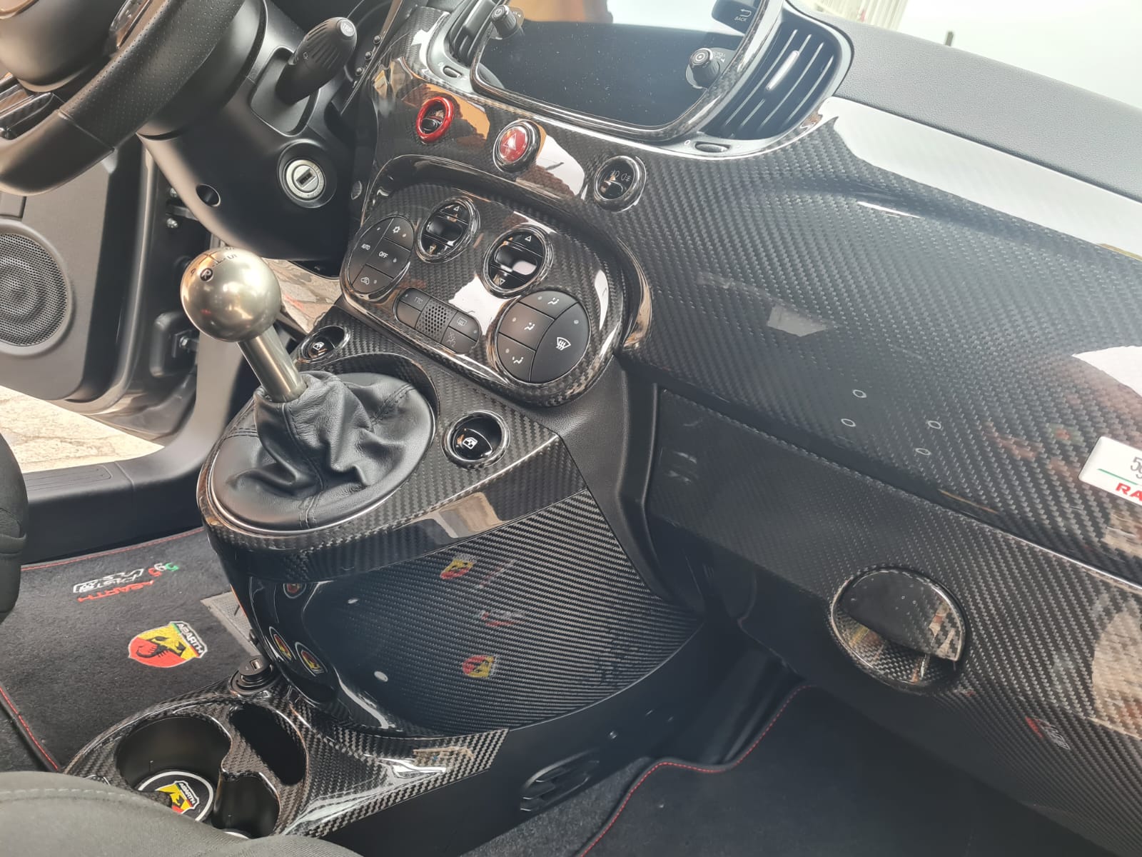 Abarth 2016+ Restyling Consola Cover Fibra de Carbono Túnel 12V