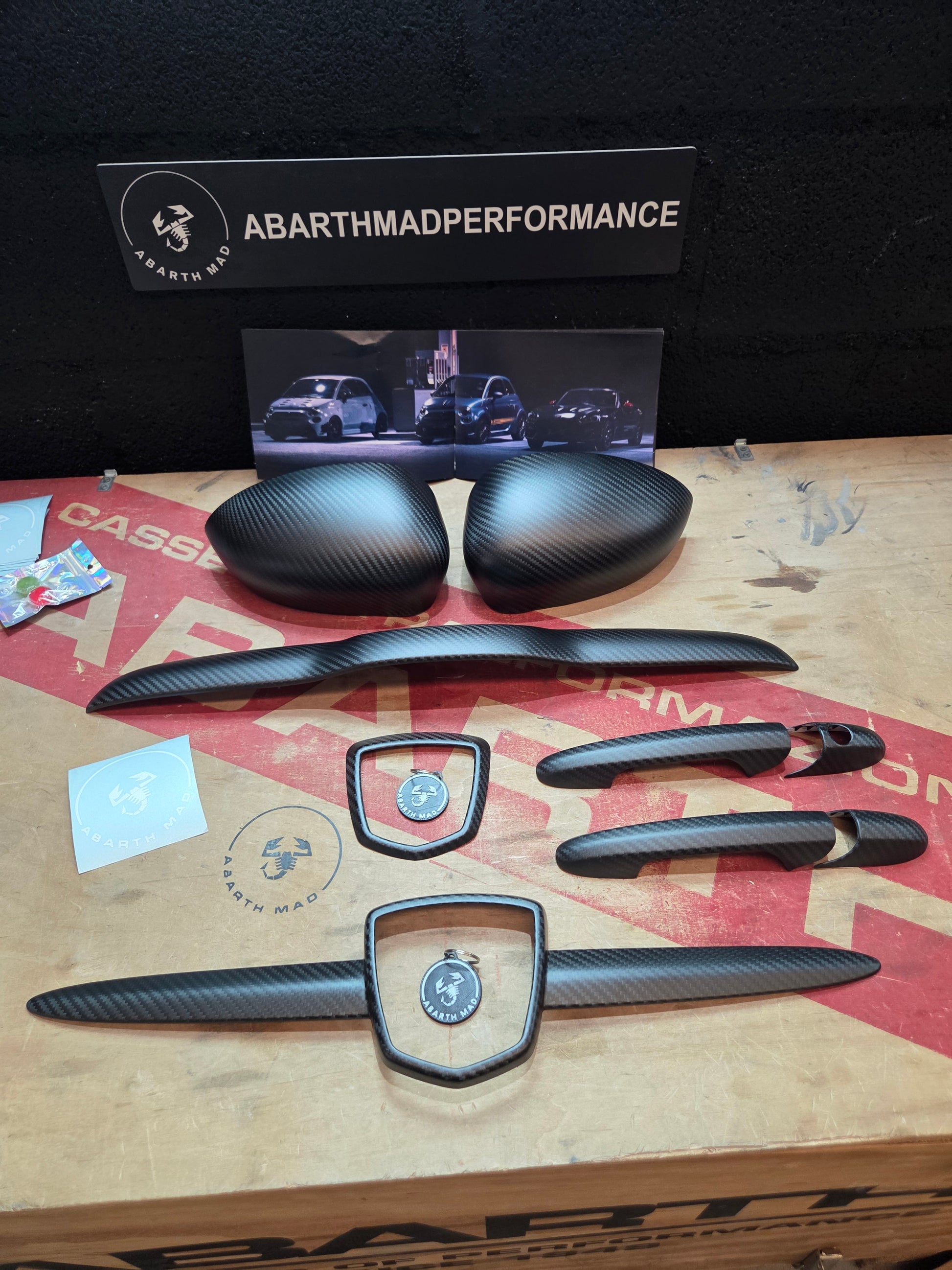 Abarth Kit Cover Exterior Fibra de Carbono Mate Carbon Fiber Matt Pack